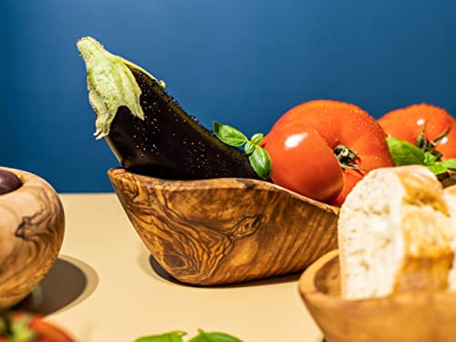 SOLTAKO Set di 2 Cestino per pane rustico - Cestino di Frutta in legno d'ulivo - Piatto da portata per baguette, frutta - Cesto di frutta - Ciotola presentato in un'elegante scatola, Circa 30-34 cm