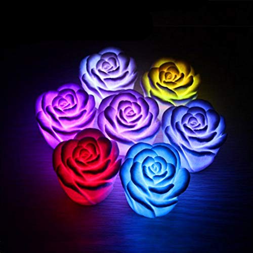 SOLUSTRE LED Candele Galleggianti Luci Set di Rosa a Forma di Variopinta Impermeabile Senza Fiamma della Cera Luce di Notte per La Cerimonia Nuziale Vasca Idromassaggio I Bambini
