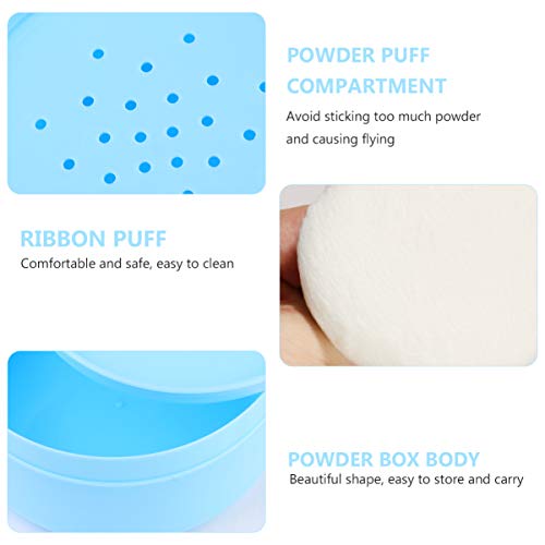 Solustre, contenitore per cipria vuoto, con nappa, portatile, con spugna in polvere, per viso, corpo, per la cura della pelle, colore: blu