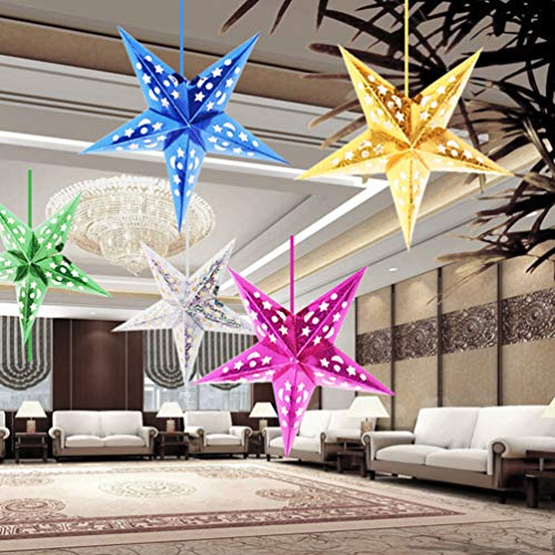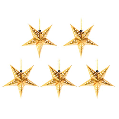SOLUSTRE 5 pezzi paralume a forma di stella di carta dorata con stelle pieghevoli, 45 cm, per matrimonio, compleanno, Natale, festival, decorazione natalizia