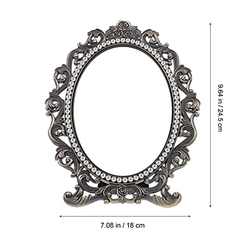 SOLUSTRE Specchio da trucco vintage per il trucco, stile europeo, colore argento