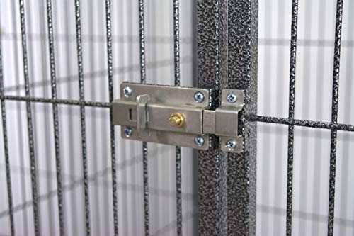 Dimensioni: cm 160x80x180H distanza tra le barre: 2,5 cm Spessore delle barre: 4 mm Peso: kg.80 Dotata di n.4 porte 2 ampie di cm.40x88 e 2 più piccole di cm.28.5x36,5 La gabbia comprende 2 posatoi in legno appositamente trattati e 4 ciotole in acciaio da 12.5 cm di diametro e 9 cm di profondità per cibo e acqua che vanno posti in appositi alloggiamenti.