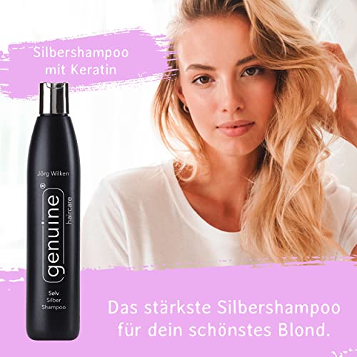 Solv Shampoo argento con cheratina contro la colorazione gialla, per capelli biondi, argentati e grigi, rafforza lucentezza e colore dei capelli, 100 ml, genuine haircare