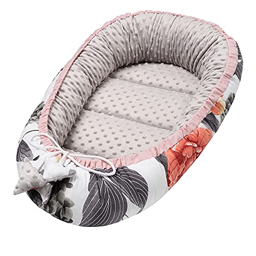 Solvera_Ltd Babynest - Lettino da viaggio in fibra di cocco MINKY + 100% cotone, morbido e sicuro (50 x 90 cm)