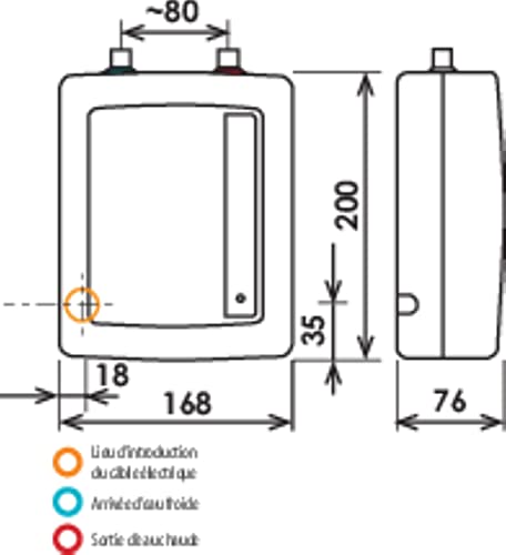bacino elettrico scaldabagno istantaneo e lavandino potenza: 5,5 kw portata (ad una temperatura di 38 ° c): 2,7l / min dimensioni: lunghezza: 200mm / larghezza: 168 millimetri / profondità: 76mm peso: 1,2 kg livello di sicurezza: ip24 il collegamento alla rete idrica m12 / 17 (3/8 '')