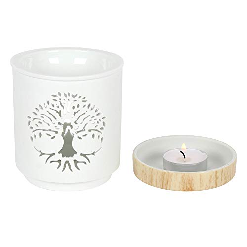 Splendido design: questo bruciatore a olio in ceramica bianca presenta un design con albero della vita con una base in ceramica effetto legno che aggiungerà un'atmosfera accogliente alla tua stanza.