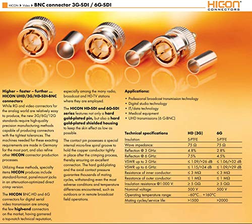 Impedenza: 75 Ω - trasmissione digitale SDI/HD-SDI/3G-SDI/6G-SDI
