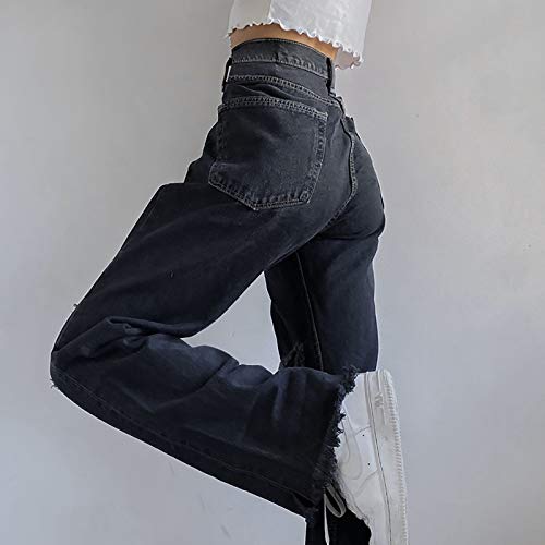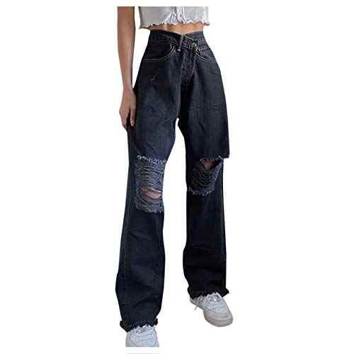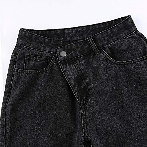 Sommerty Jeans da Donna Vita Alta Asimmetrico Sottile Jeans Casual Pantaloni Larghi in Denim Dritto Jeans Strappati con Fori Pantaloni Casual