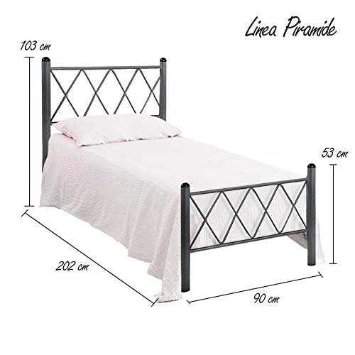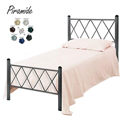 SomnusSana Letto in Ferro Battuto Moderno Singolo PIRAMIDE - Made in Italy Vari colori da cm 80x190 Artigianale (Bianco Opaco)