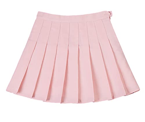 SOMTHRON Gonna da donna basic, a vita alta, a pieghe, tinta unita, da tennis, skater, rosa 2, XL