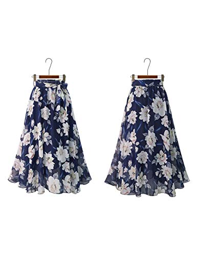 SOMTHRON - Maxi gonna da donna in chiffon con stampa floreale, lunga gonna da cerimonia nuziale o da cocktail Blu S