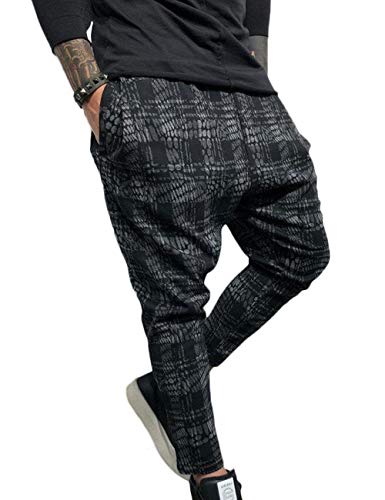 SOMTHRON - Pantaloni da uomo alla moda, a quadretti, con elastico in vita Grigio 1 M