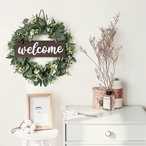 ☆ Design raffinato: la ghirlanda di foglie di eucalipto è composta da due parti: un passante verde per foglie e una tavola di legno con la parola "Welcome".