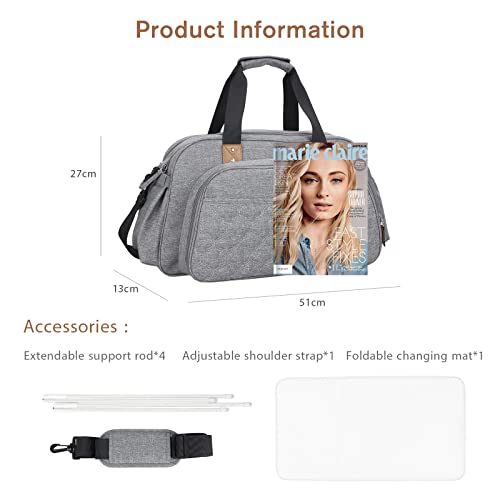 SONARIN Borsa Fasciatoio per Neonato con Lettino Pieghevole,Borsa per il Cambio Borsa per Pannolini da Viaggio Borsa a Tracolla Grande Capacità Impermeabile con Fasciatoio(Grigio)