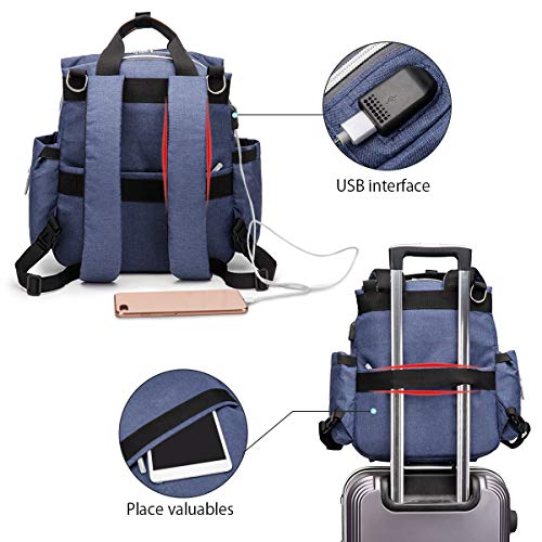 SONARIN Elegante impermeabile Zaino Fasciatoio Bambino per Pannolini,con fasciatoio,Cinturino per passeggino,Organizer per Zaino da Viaggio,Interfaccia USB,Grande Capacità(Blu)