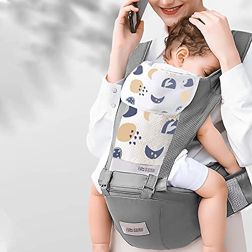 SONARIN Marsupio Neonati Ergonomico con Sedile,Puro Cotone Portantina Leggero e Traspirante per Bambini da 0-36 Mesi,Approvato da Standard di Sicurezza,Multiposizione,Fino a 30 KG(Grigio)