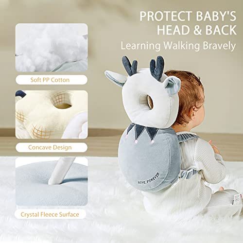 Materiale Morbido: Il cuscino protettivo per la testa del bambino è realizzato in pile di cristallo di alta qualità, imbottito con cotone PP super morbido, elastico morbido e delicato sulla pelle. È inodore e non contiene sostanze nocive, offre al bambino un'esperienza di utilizzo confortevole.