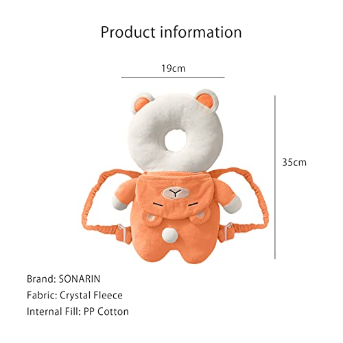 SONARIN Protezione per la Testa del Bambino,Cuscino di Protezione Cuscinetti Protettivi per la Testa del Bambino Cuscino di Sicurezza Regolabile Poggiatesta Anti-Caduta per Neonato(Orso)