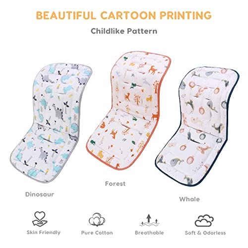 SONARIN Spesso Cuscino Passeggino,100% Cotone Copriseduta Passeggino Universale Materassino Passeggino Riduttore Passeggino Morbido Cuscino Sedile per Passeggino Seggiolino Auto(Dinosauro)