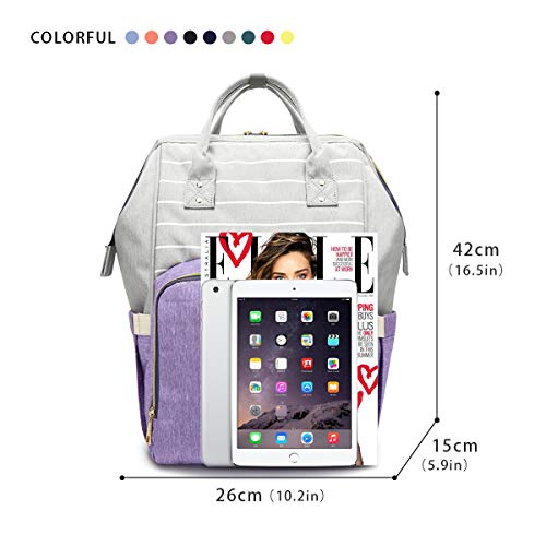 SONARIN Stripe Multifunzione Zaino Fasciatoio Bambino per Pannolini,Organizer per Zaino da Viaggio Con Sacchetto di Isolamento Termico,Impermeabile,Grande Capacità,Elegante,Ideale Regalo(Viola Chiaro)