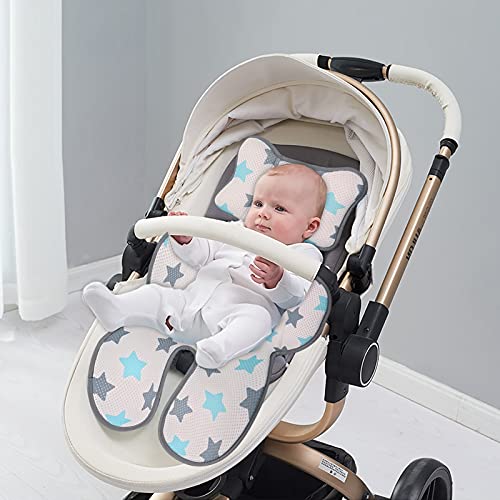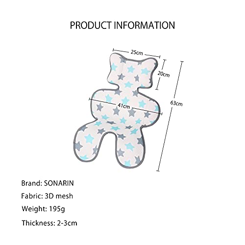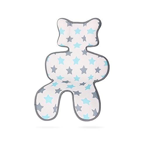 SONARIN 3D Traspirante Cuscino per Passeggino, Cuscino Comfort Inserto per Passeggino, Seggiolino di sicurezza,Seggiolone,Tappetino estivo, Universale, Fantastico per il bambino(Stella blu)