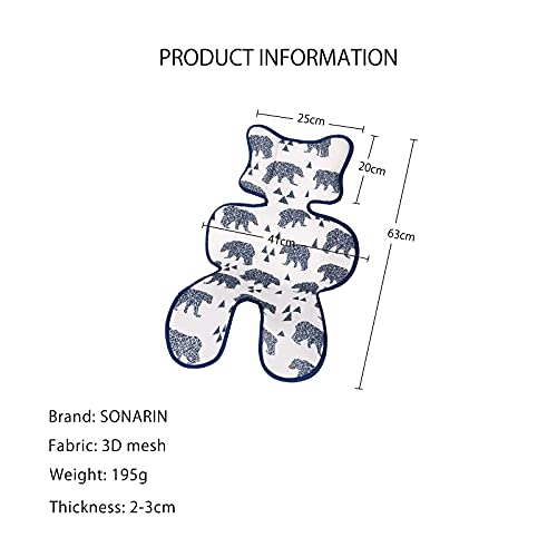 SONARIN 3D Traspirante Cuscino per Passeggino, Cuscino Comfort Inserto per Passeggino, Seggiolino di sicurezza,Seggiolone,Tappetino estivo, Universale, Fantastico per il bambino(Orso)