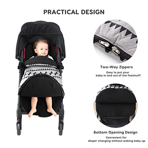 Design Pratico: Progettato con cerniere a due vie, il coprigambe del passeggino può essere aperto sul fondo, comodo per il cambio del pannolino senza svegliare il bambino. Il coprigambe è ampio e offre spazio sufficiente per consentire al bambino di scalciare e girarsi liberamente senza essere costretto.