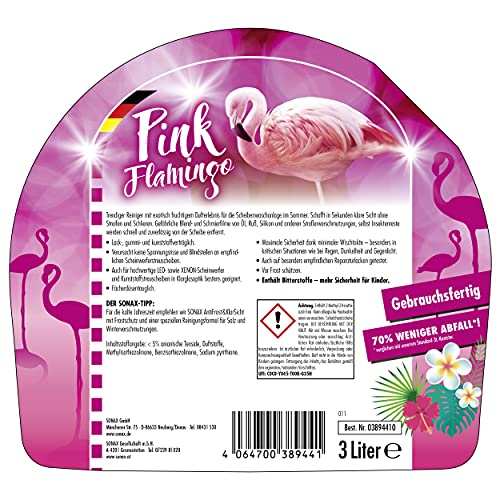 SONAX Detergente per parabrezza, pronto all'uso rosa fenicottero (3 litri), visione chiara in pochi secondi, senza striature e striature | Art. 03894410