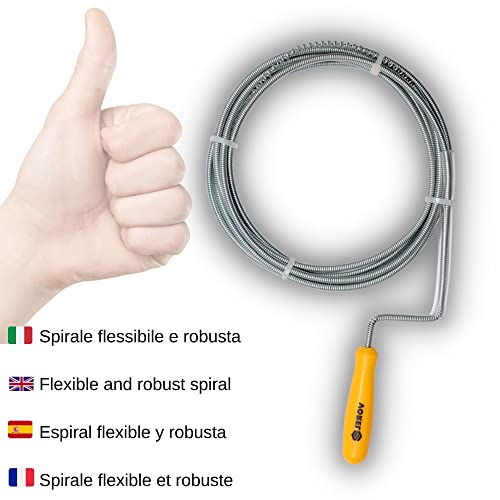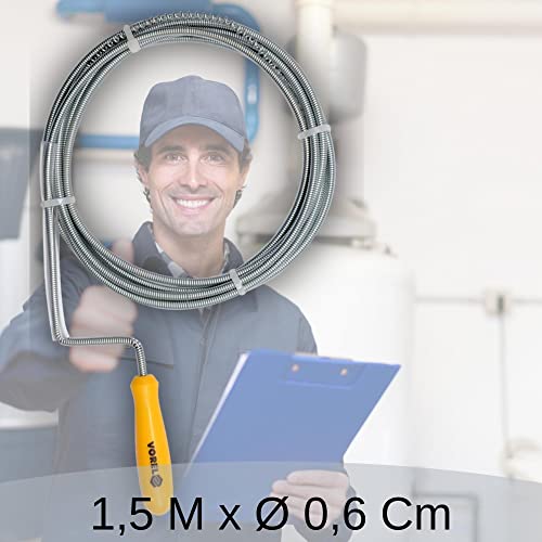 Sonda sturatubi professionale VOREL 1,5M x 0,5 cm - Flessibile strumento idraulico stura lavandini e scarichi | Molla sturatubi