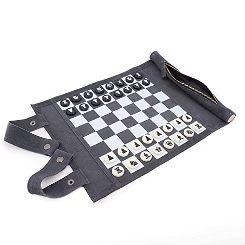 Sondergut - Chess/Checkers Roll-Up Travel Set Leather