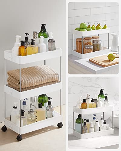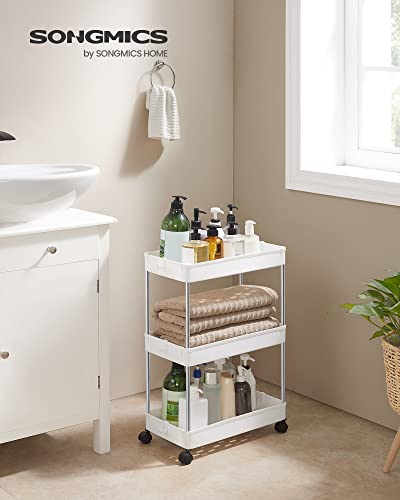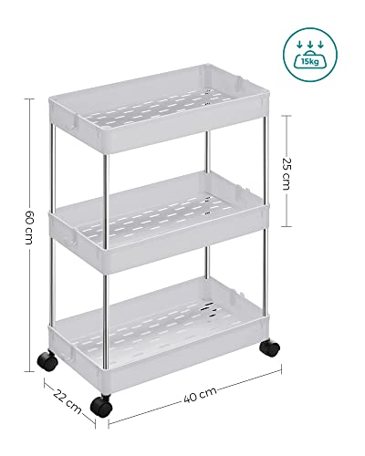 SONGMICS Carrello portaoggetti con ruote, 3 livelli, salvaspazio per bagno, cucina, ufficio, 40 x 22 x 60 cm, bianco KSC009W01