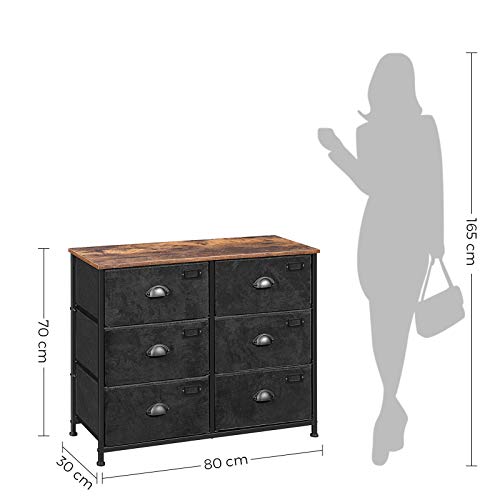 SONGMICS Cassettiera in tessuto, con 6 cassetti, armadio portaoggetti per vestiti, stile industriale, struttura in metallo, superficie legnosa, per camera da letto, corridoio, marrone rustico e nero
