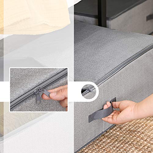 SONGMICS Contenitore Sottoletto con Spazio Interno Regolabile, Set di 2 Organizzatori Armadio Pieghevole, Sotto al Letto o Sopra l'Armadio, per Lenzuola Coperte Vestiti, 82 x 42 x 20 cm, Grigio RUB02G