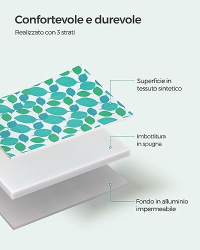 SONGMICS Coperta Picnic, 200 x 200 cm, Grande Telo da Campeggio, Parco, Giardino, Esterno, Spiaggia, Strato Impermeabile, Pieghevole, Foglie Verdi Acqua GCM78Y Unisex Adulto, Türkise Blätter