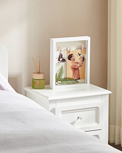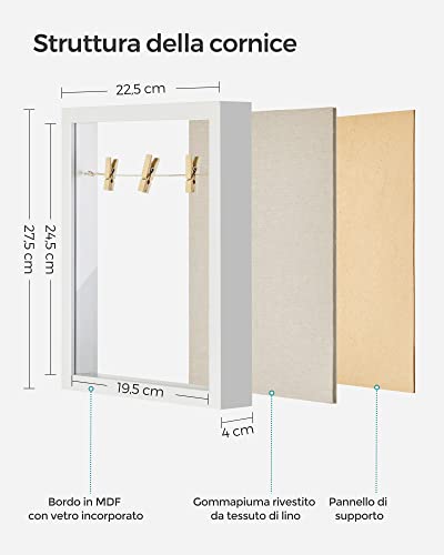 SONGMICS Cornice Profonda per Fotografie, Cornice Collezione con Spago, Mollette e Spilli, per Fai da Te, Retro in Tessuto Simil Lino, Fronte in Vetro, e Bordi in MDF, Bianco RPF007W01