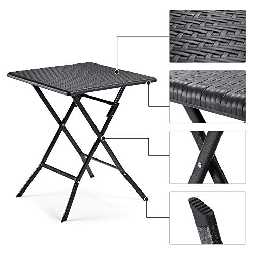 SONGMICS GPT03BK - Tavolo Pieghevole da Giardino, in polirattan, Impermeabile, con Gambe in Ferro, Piedi a Forma di Zoccolo, 62 x 62 x 73 cm, Colore: Nero