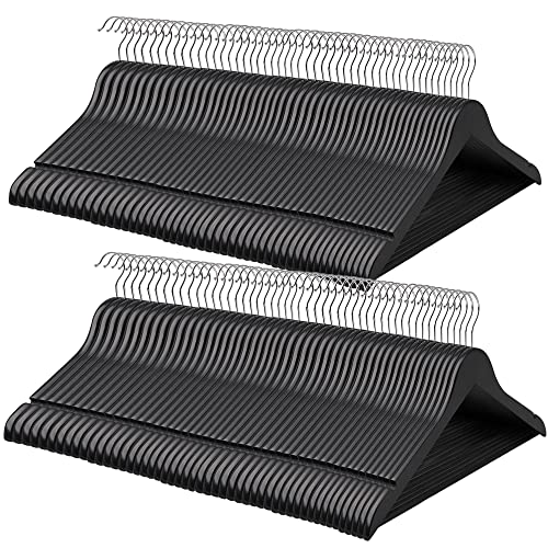 SONGMICS Grucce Legno, 100 Pezzi, Appendiabiti con Scanalature su Spalle, Barra Portapantaloni Antiscivolo e Gancio Girevole a 360°, per Completi Camicie Cappotti, Nero CRW02B-100
