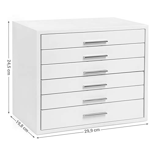 SONGMICS JOW13WT - Scatola portagioie in legno compisite, organizer per gioielli a 6 livelli, ideale per collane, orecchini, occhiali solari, orologi, bracciali, colore: bianco