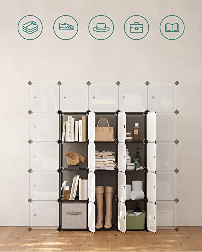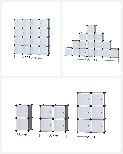 SONGMICS LPC443G01 - Mobile portaoggetti modulare, 16 scomparti, in plastica, con ante per vestiti, scarpe, giocattoli, libri, facile da montare, grigio