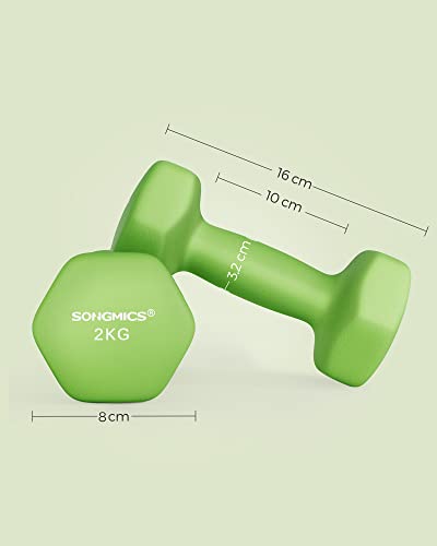 SONGMICS Set di 2 Manubri, 2 x 2 kg, Manubri Esagonale con Superficie in Vinile, per Fitness, Esercizio, Addestramento, per Palestro in Casa, Verde SYL904C01
