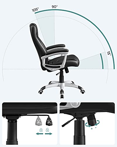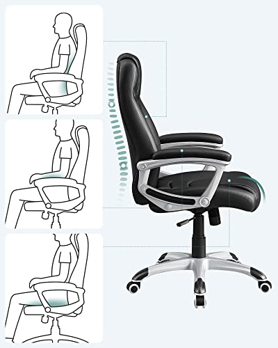 Songmics OBG21BUK - Sedia da ufficio con schienale alto e funzione recliner, poltrona girevole per scrivania e postazione PC, colore: nero