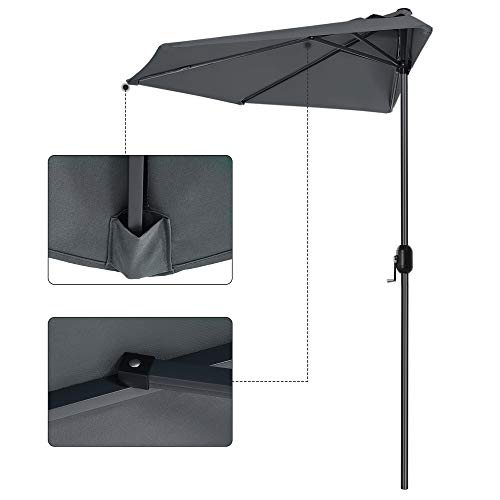 SONGMICS Ombrellone da Balcone a Semicerchio di Diam. 2,7 m, Ombrellone Decentrato con Manovella, Parasole con Protezione UPF50+, Base Non Inclusa, per Terrazzo Giardino Esterno, Grigio Fumo GPU31GY