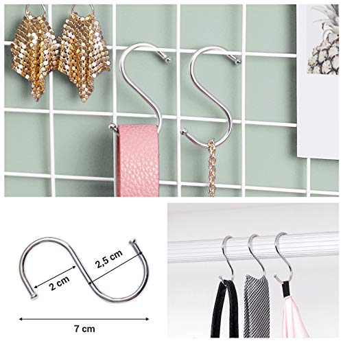 PICCOLI AIUTANTI PER TUTTE LE TUE IDEE: Vari accessori rendono ai pannelli a griglia un'attrazione — 4 ganci a S per chiavi o giocattoli piccoli, 10 clip in legno e 5 clip a legante neri per bollette, promemoria e cartoline e la corda di canapa per visualizzare le foto che ti ricordano i bei tempi