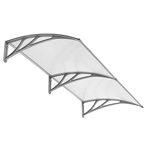SONGMICS Pensilina in Policarbonato Trasparente, 195 x 96 cm, Tettoia per Esterno, Parapioggia per Finestra Porta Balcone, Trasparente e Grigio GVH191