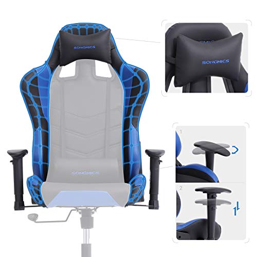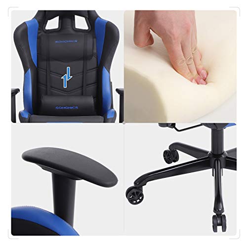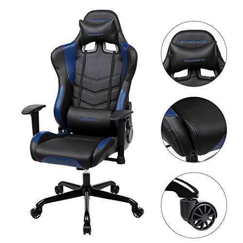 SONGMICS Poltrona Girevole Sedia direzionale da Ufficio con poggiatesta e Cuscinetto Lombare 66 x 68 x (124-132) cm Nero, Blu RCG12BU