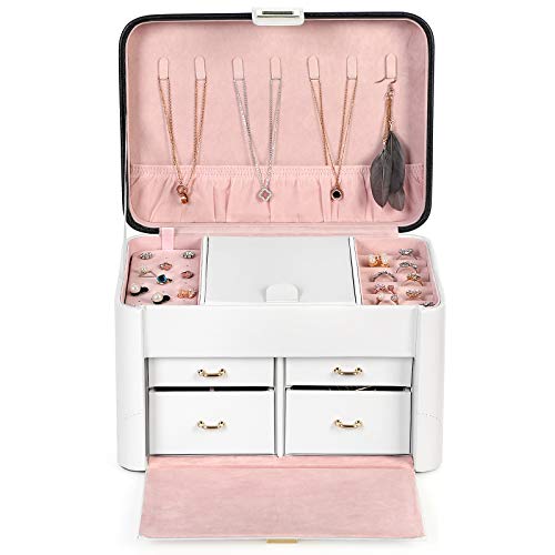 SONGMICS Portagioie, Cofanetto Richiudibile per Gioielli, con Specchio Separato, per Collane, Anelli, Spille, Orecchini, Orologi, Ottima Idea Regalo JBC149WT
