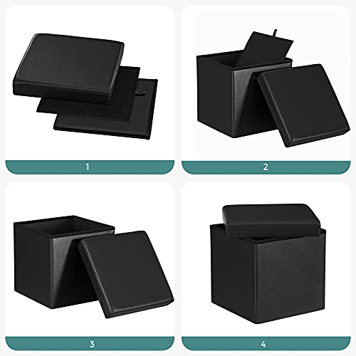 SONGMICS 38 cm Pouf Cubo Poggiapiedi Sgabello Pieghevole Carico Max. 300 kg Nero LSF101
