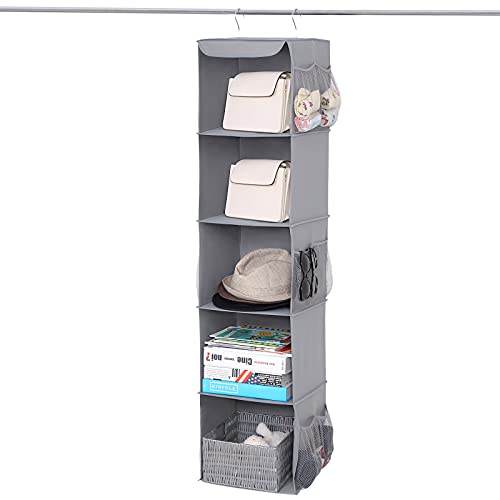 SONGMICS RCH03G - Mensola pensile con 5 grandi scomparti, con 9 tasche laterali in rete, per vestiti, scarpe, accessori e molto altro ancora. 30 x 130 x 30 cm