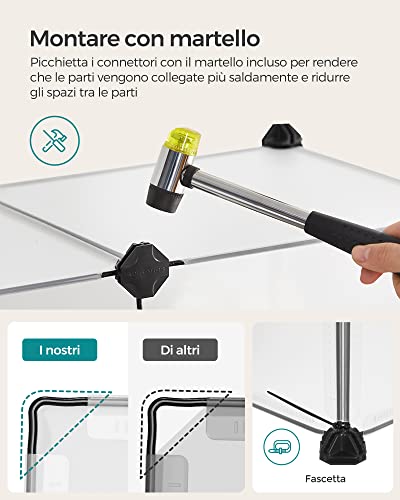 [Montaggio semplice] Basta unire i pannelli di plastica con i connettori multiangolo e il martelletto di gomma incluso, puoi montare rapidamente questo recinto per animali domestici;