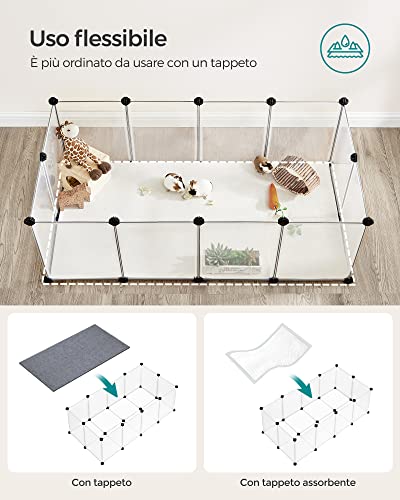 SONGMICS Recinto per Animali con Fondo, Recinzione per Animali di Piccola Taglia, Gabbia in Plastica da Interno per Criceti Conigli Ricci Porcellini d'India, 125 x 63 x 42 cm, Bianco LPC001W01